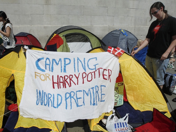 Falta pouco pessoal, na próxima quinta (da outra semana) vai estrear o tão aguardado final da saga do bruxo de Londres, Harry Potter, e o Blog do Brito vai trazer informações todos os dias até o grande dia da estreia, então fique ligado se você gosta de Harry Potter acesse o B² todos os dias. E a notícia de hoje, são os super fãs do filme que já estão acampados nas portas do cinema para assistir o filme. Veja as fotos: